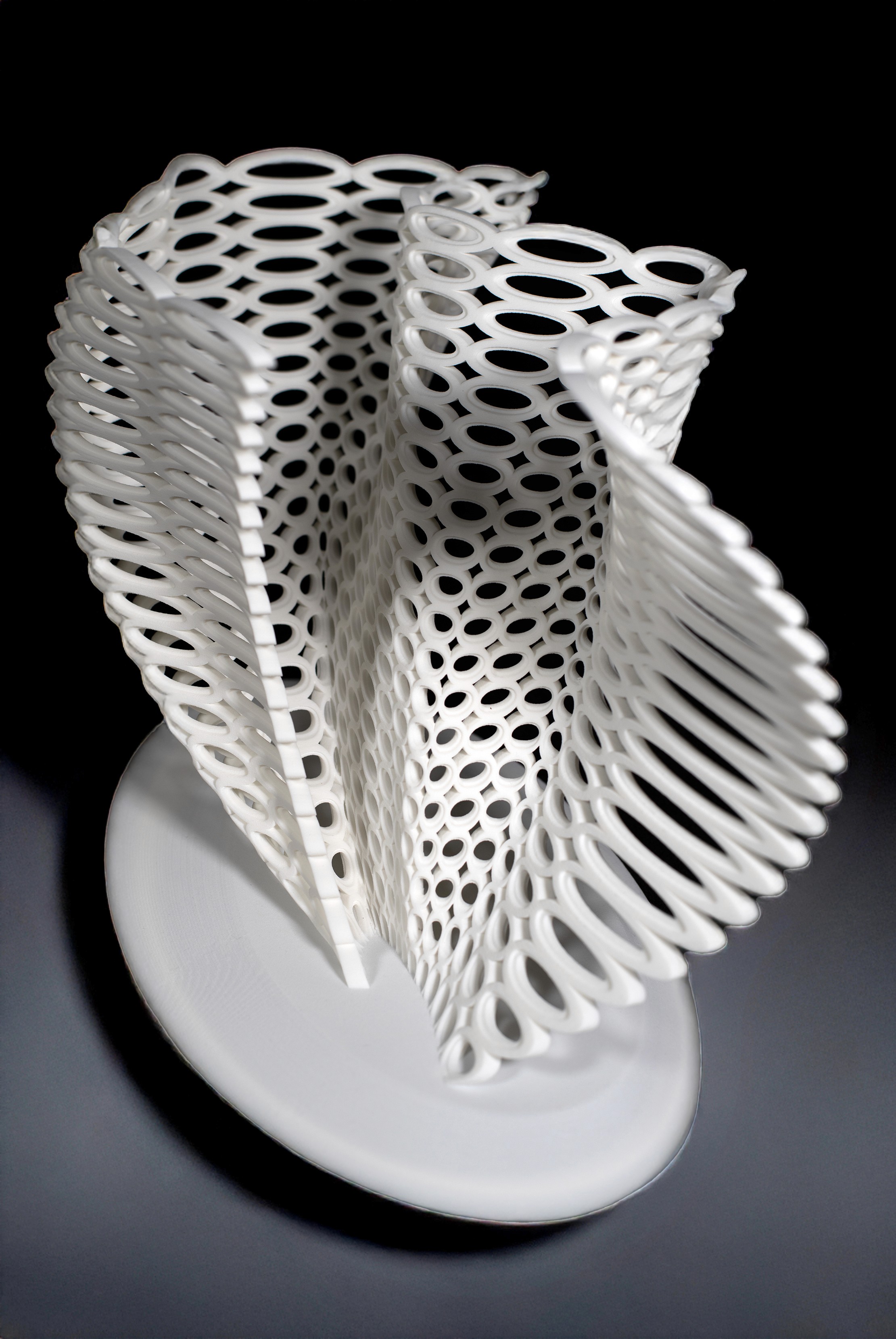 The Growth Rings sculpture is like a tree trunk of horizontal rings, where these vertical growth rings reveal the story of growth as memory within a form's structural fabric. This sculpture invites contemplation into the fabric of memories that inform one's life.